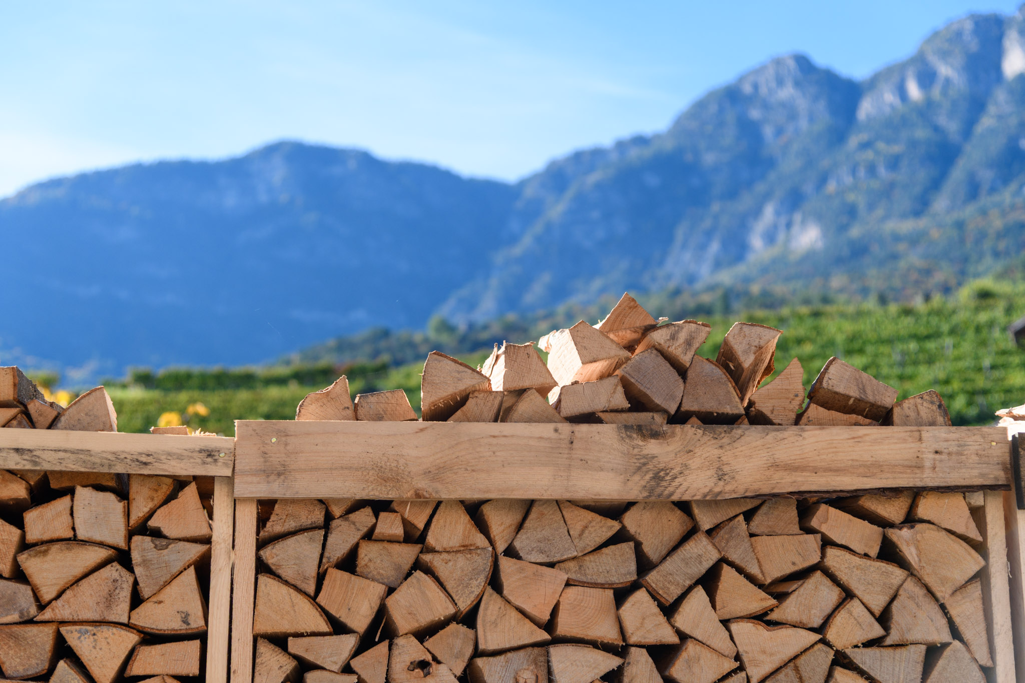 Brennholz und Maschinen